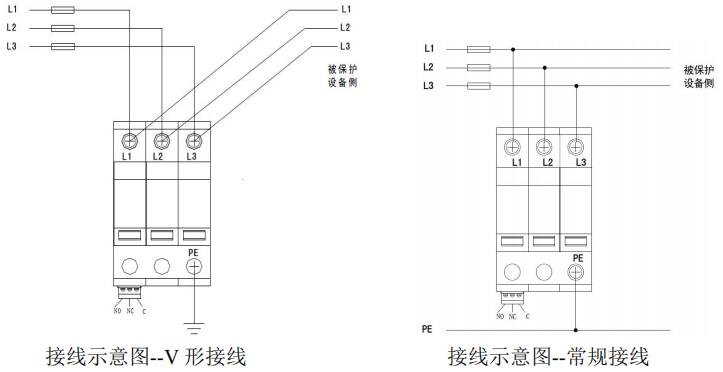 1模塊結(jié)構(gòu)浪涌保護器接線圖如安裝接線圖所示: