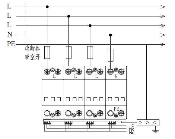 1 模塊結構防雷器接線圖如安裝接線圖所示: