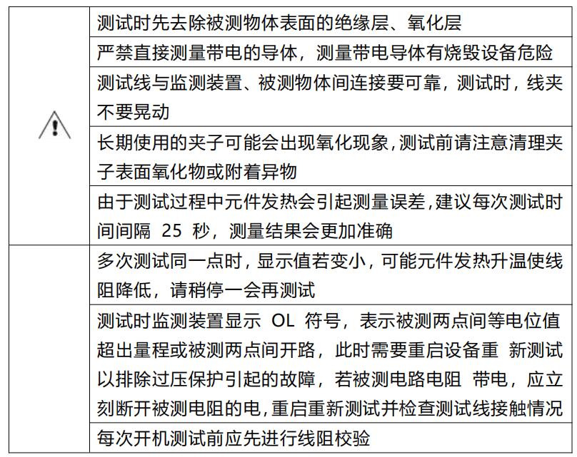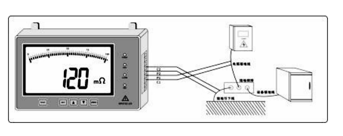 將C1、P1端接導體的一端,C2、P2端接導體的另一端,待接線無誤并確定連接良好后。按下“測試”鍵,啟動測試,“告警”指示燈常亮,蜂鳴器發出“滴滴”的聲音,直到“告警”指示燈熄滅和“滴滴”聲音停止即測試完成。