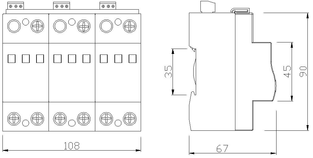 劣化失效指示 | 防雷模塊具有指示窗口,故障狀態下指示窗口變紅色 | |