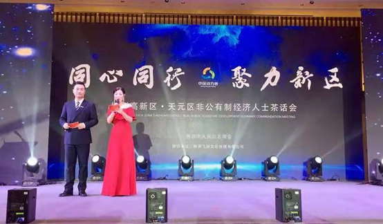 2020年1月14日下午,株洲市高新區、天元區工商業聯合會在株洲凱越大酒店隆重舉行主題為“同心同行,聚力新區”非公有制經濟人士茶話會,高新區黨工委書記、天元區委書記周建光,天元區政府區長姚永告在會上分別對深入貫徹落實促進民營經濟發展做了重要講話,激勵株洲高新區廣大民營企業家踴躍投身到高質量、快速發展的產業建設中來。