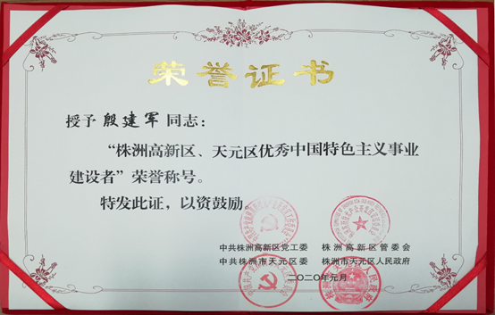 湖南中普董事長殷建軍榮獲高新區、天元區“中國特色社會主義事業建設者”榮譽