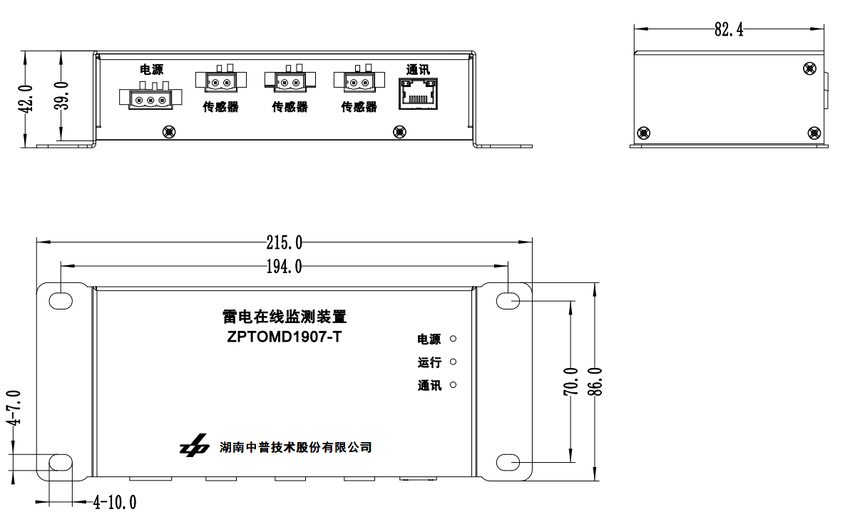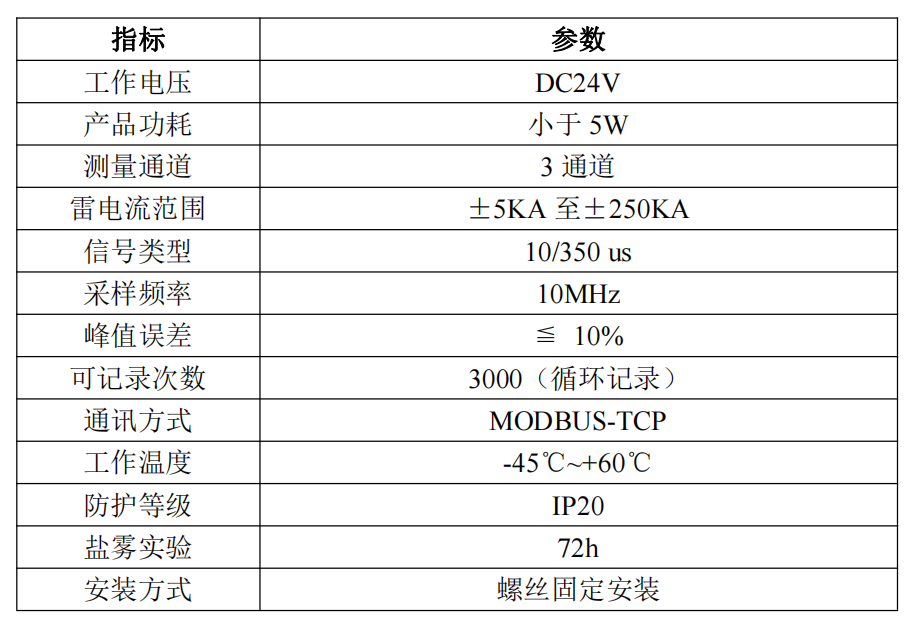 ZPTOMD1907-T型雷電在線監測裝置是一種實時采集3路雷電流數據并具有通信功能的裝置,我公司具備該裝置的自主知識產權。裝置主要包含3 個雷電流傳感器、1個主機組成。該裝置可用于浪涌保護器、避雷針等其他設備。當監測點遭受雷擊時,裝置可實時記錄監測點遭受的雷擊數據,雷擊數據包括:記錄雷擊發生時間、雷電流幅值、雷電流極性、雷擊次數。裝置將處理好的雷擊數據進行本地存儲并通過MODBUS-TCP通訊方式輸出給后端modbus master。