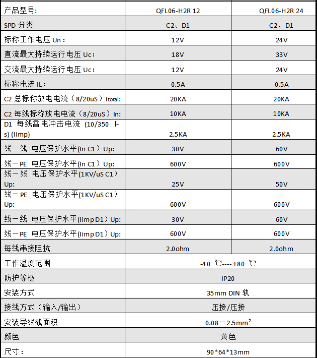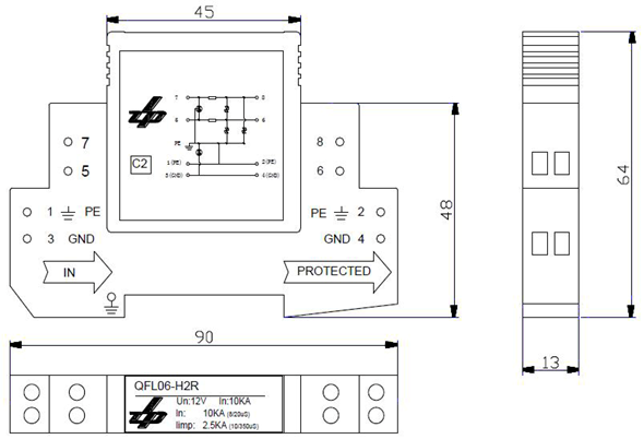 QFL06-H2R SPD模塊,寬度為13mm節約安裝空間,用于直接或間接屏蔽接地的對地隔離的平衡接口一對線保護,適用0A-2及后續分區的防雷保護,SPD模塊可插拔。